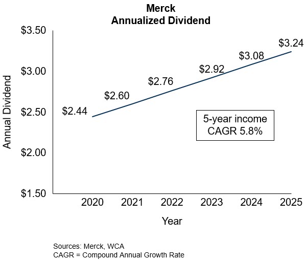 The board of directors of Merck (NYSE: MRK) has declared a regular quarterly dividend of $0.85 per common share, an increase of approximately 5% from the previous quarterly dividend of $0.81. Payment of the dividend is expected in January 2026.