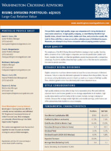 The watchword for the WCA Rising Dividend Portfolio strategy is quality. We look for resilient, conservatively-financed businesses with a competitive advantage. Academic studies show that quality is one of the few market anomalies that tend to persist over time.