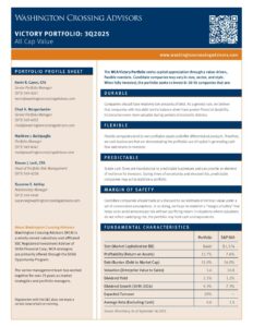 The WCA VICTORY PORTFOLIO seeks capital appreciation through a value-driven, flexible-mandate. Candidate companies may vary in size, sector, and style. When fully invested, the portfolio seeks to invest in 20-30 companies that are: